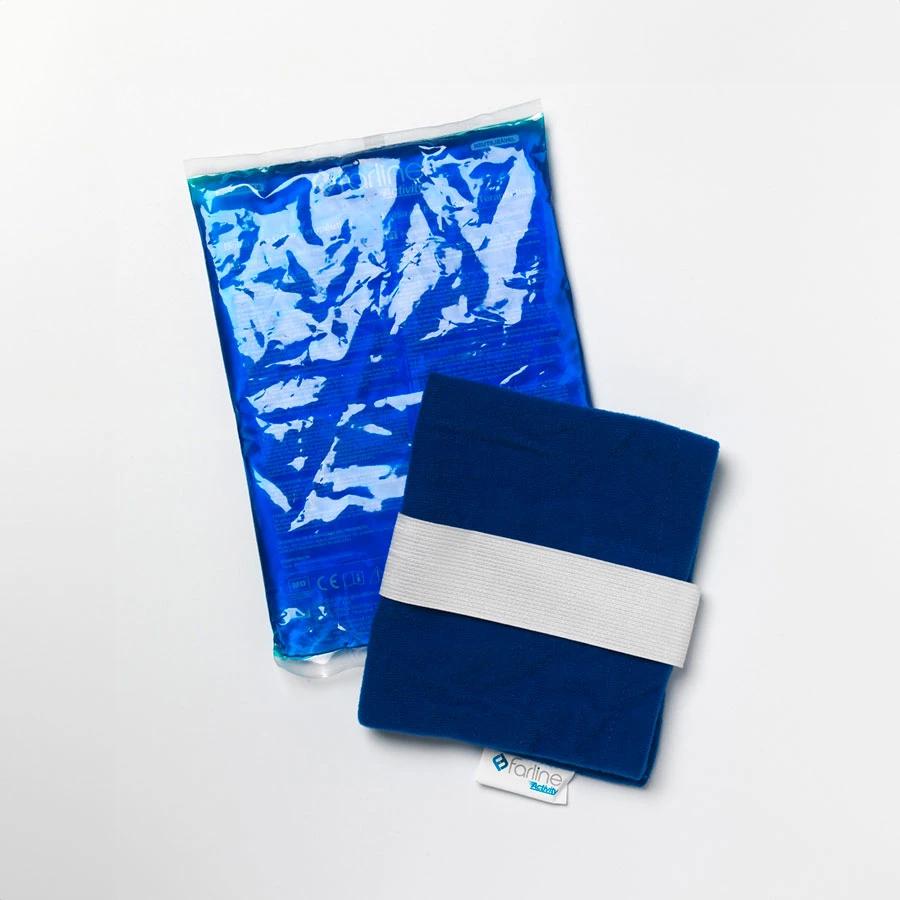 Bolsa de gel triple celda, reutilizable para aplicación de frío o calor. Incluye funda protectora y cinta de sujección. Alivia el dolor y favorece la recuperación posterior al ejercicio y la recuperación de la artritis o tirones. Cumple la normativa de productos sanitarios.