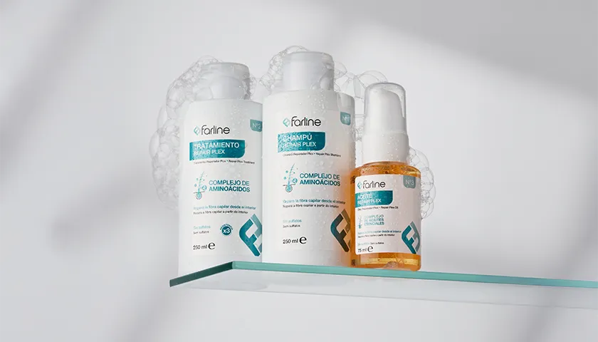 Una vez limpio, el cabello necesita un refuerzo que actúe en profundidad. El Tratamiento Repair Plex es la clave: fortalece la estructura capilar desde el interior, multiplicando hasta tres veces su resistencia. Además, hidrata intensamente y nutre para prevenir el envejecimiento y mejorar el brillo y la suavidad.