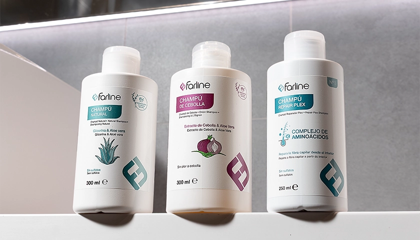 En este caso, el Champú de Cebolla es el más adecuado, ya que está elaborado con un 99 % de ingredientes de origen natural y con aloe vera de cultivo ecológico. Además, su fórmula contiene betaína y pantenol. Está indicado para el uso diario en todo tipo de cabellos, ya que limpia en profundidad mientras estimula y fortalece el crecimiento capilar, aportando brillo y vitalidad. La forma de aplicación es igual que la del Champú Natural de Farline.